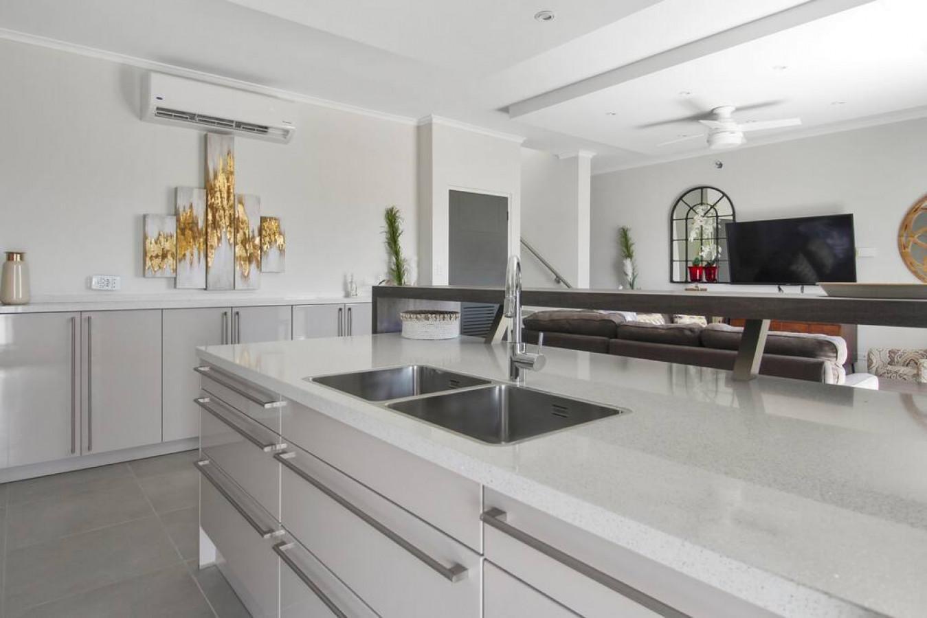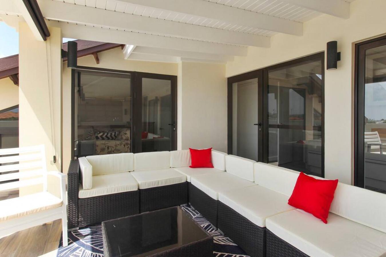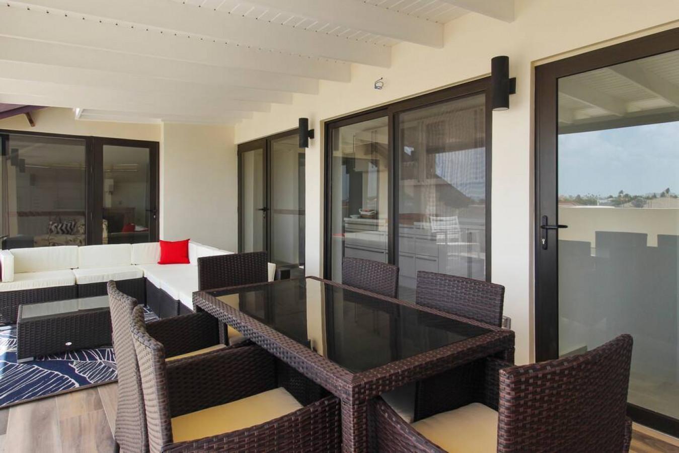 4 bedrooms , 2 kitchens, 3 bathrooms loft with the view of the Caribbean, built in bbq in the loft .